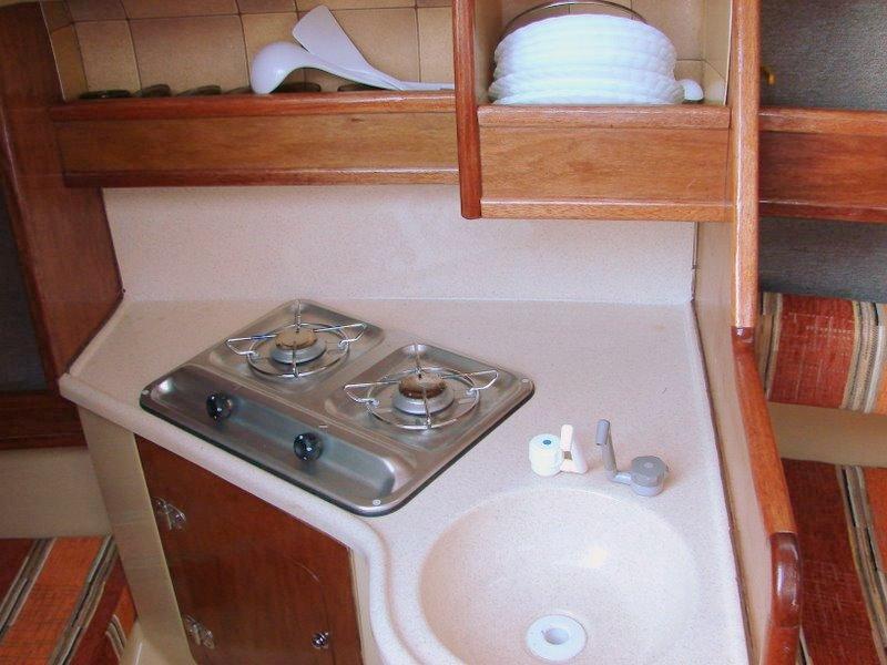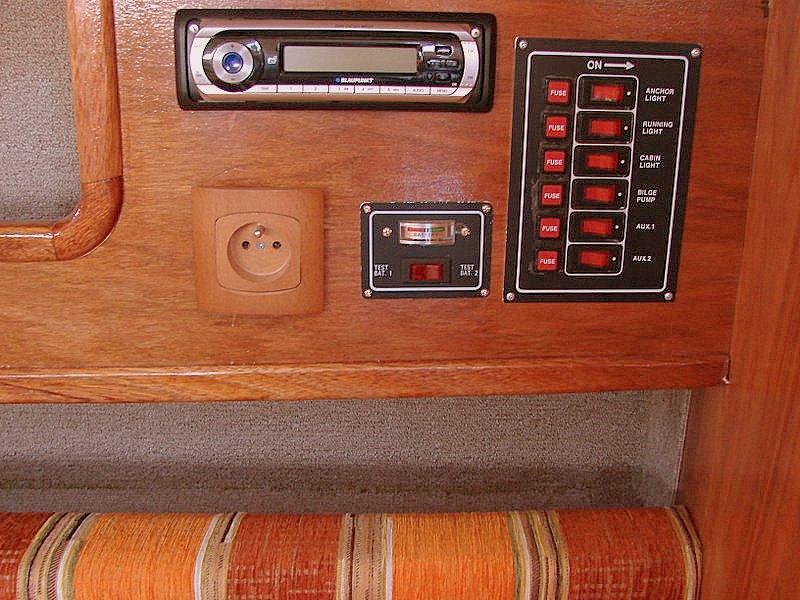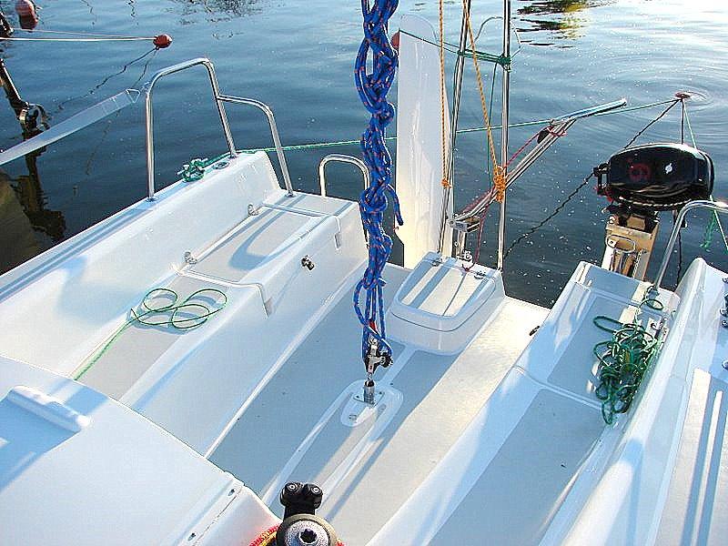 Wyposażenie dodatkowe: bramka do kladzenia masztu, sztywny sztag, roll fok, lazzy jack, instalacja wody - zbiornik, instalacja wody zaburtowej, radio, CD, instalacja 230 V