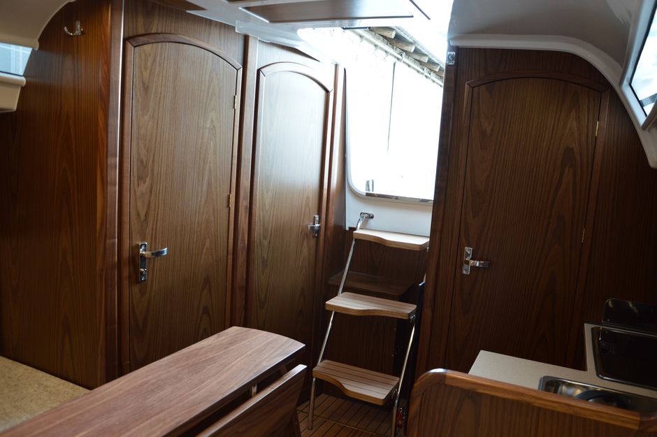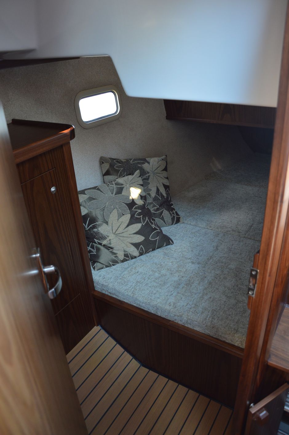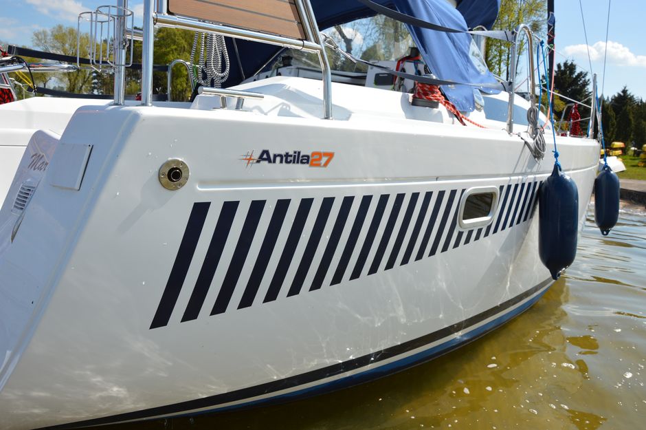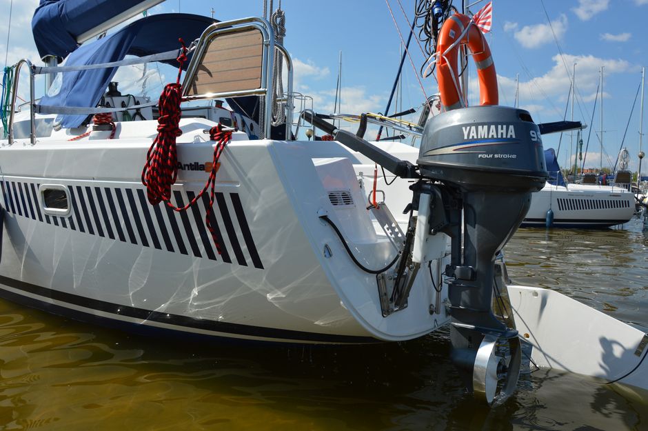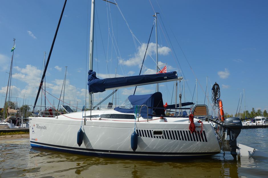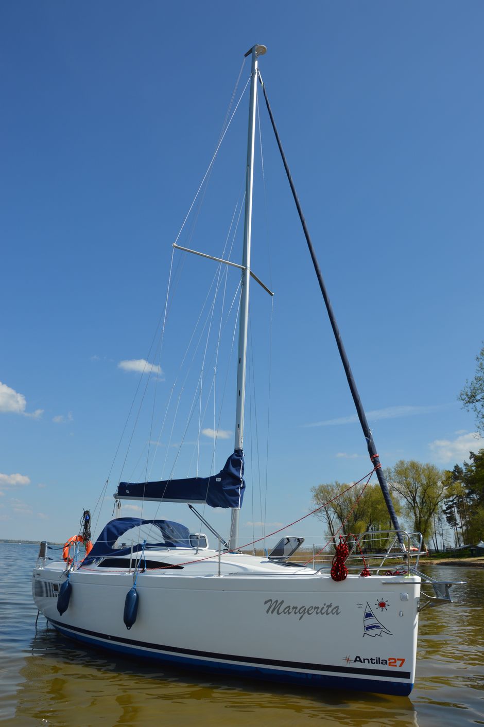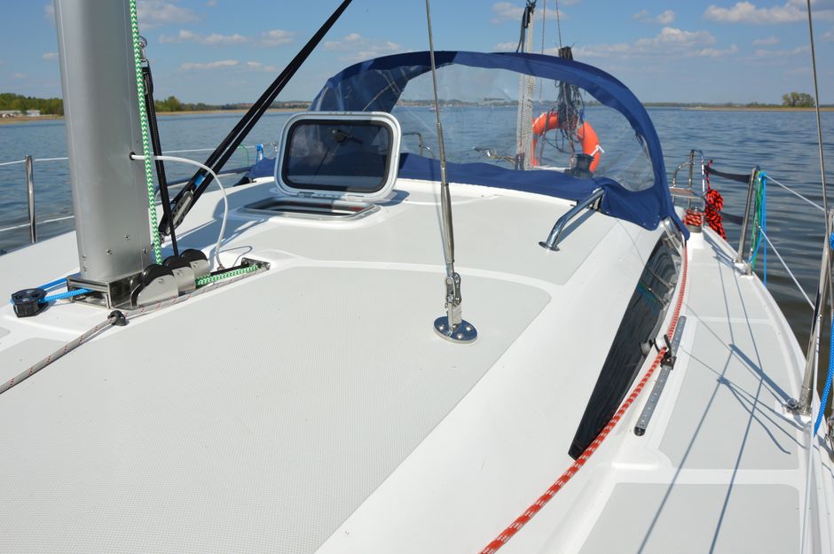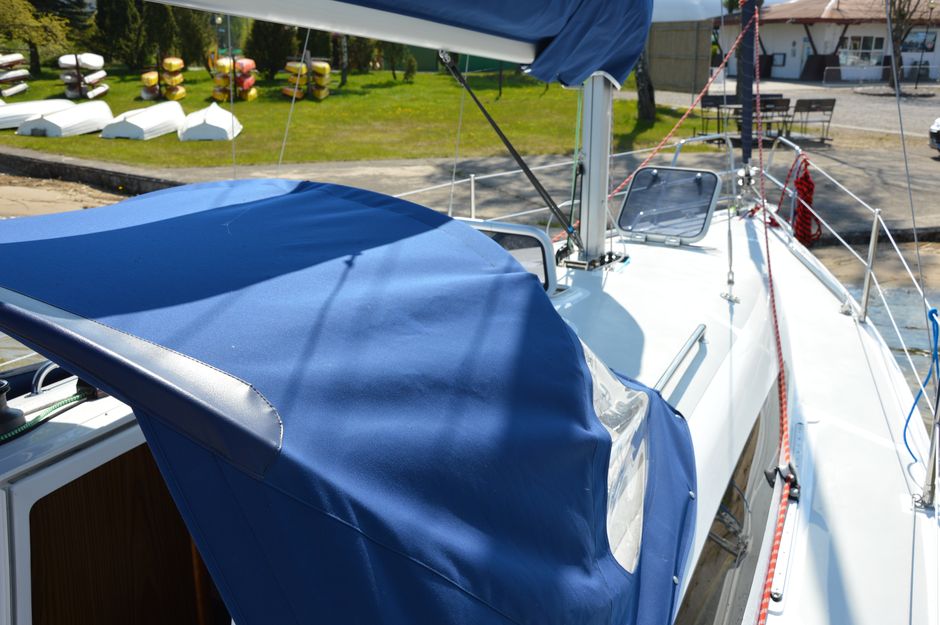 Wyposażenie dodatkowe: bramka do kladzenia masztu, sztywny sztag, roll fok, lazzy jack, instalacja wody - zbiornik, radio, mp3, TV, lodówka, ogrzewanie, instalacja 230 V, oświetlenie kokpitu, echosonda