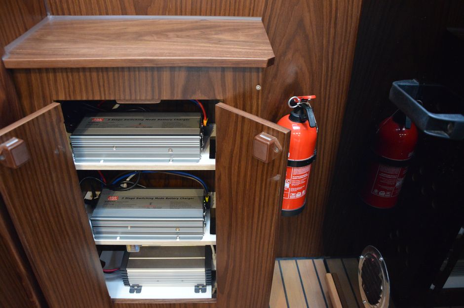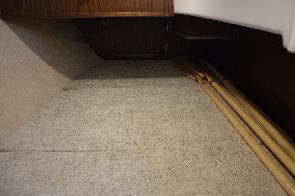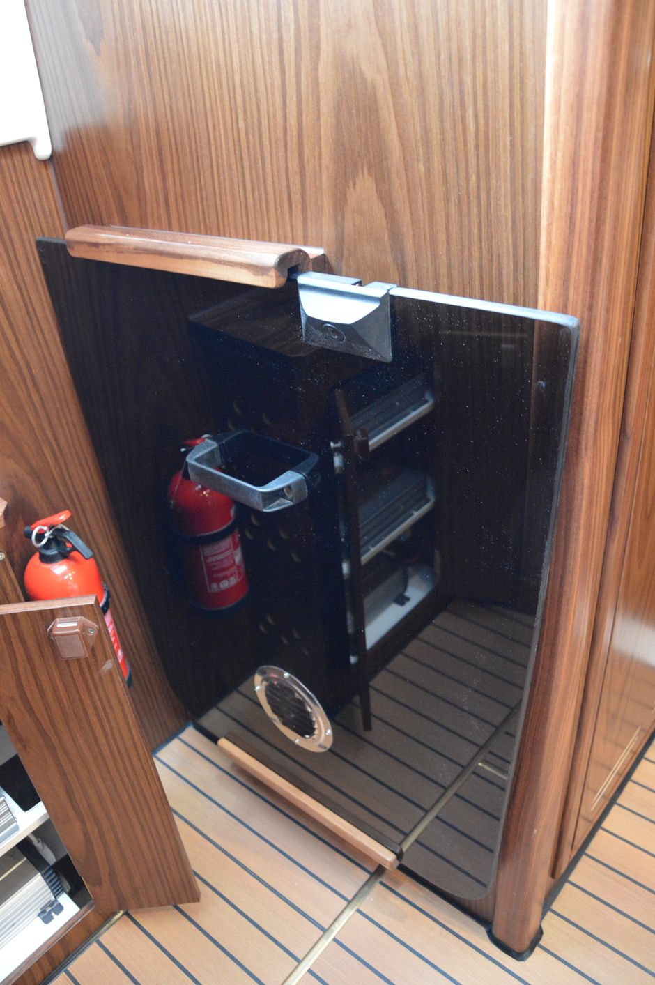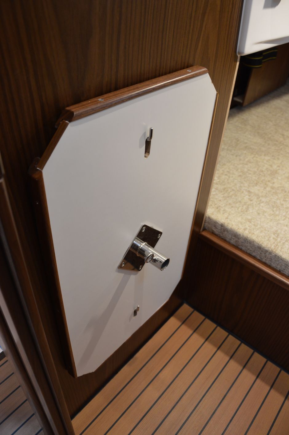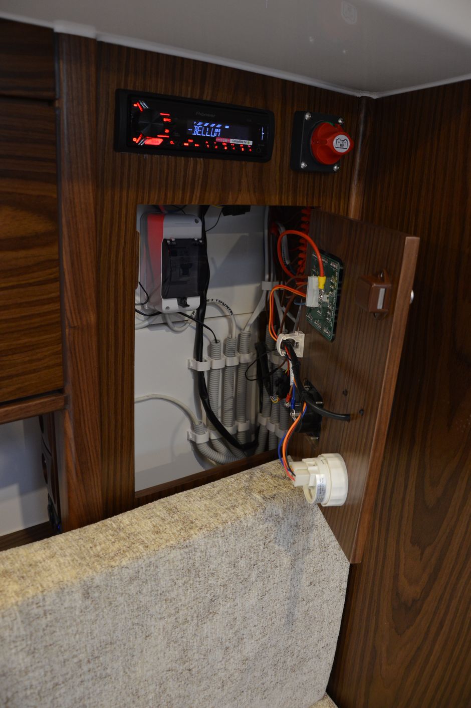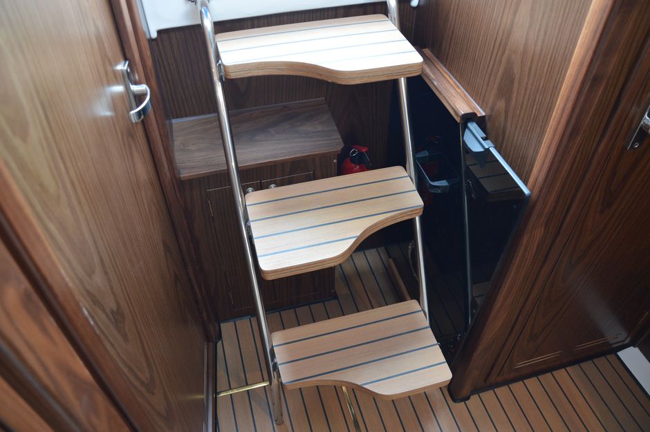 Wyposażenie dodatkowe: bramka do kladzenia masztu, sztywny sztag, roll fok, lazzy jack, instalacja wody - zbiornik, radio, mp3, TV, lodówka, ogrzewanie, instalacja 230 V, oświetlenie kokpitu, echosonda