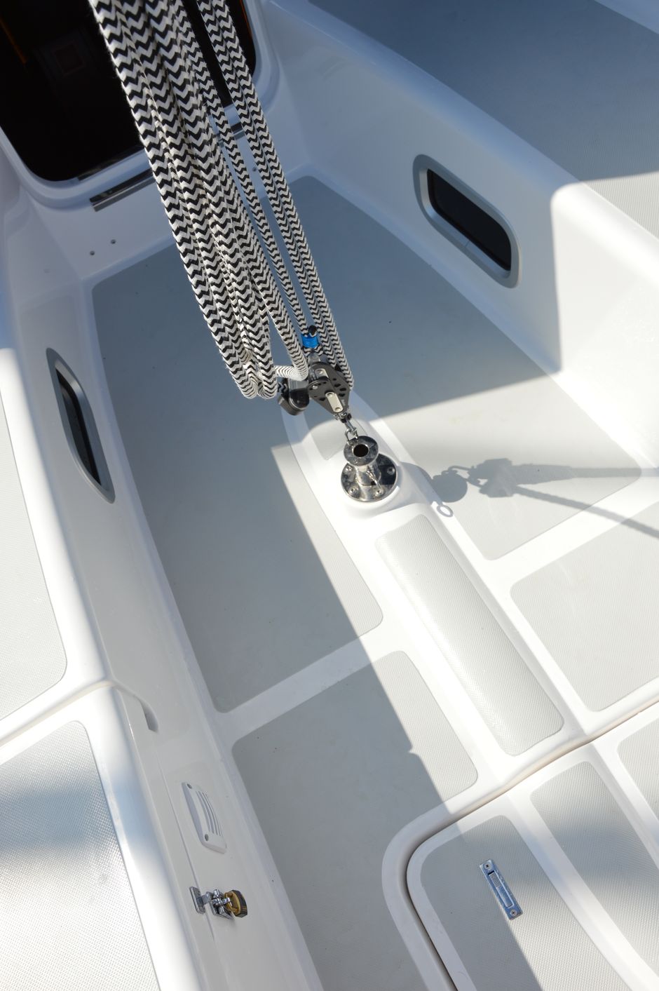 Atrakcyjna, dynamiczna sylwetka jachtu połączona z ergonomicznym ukształtowaniem pokładu oraz dopracowanymi detalami jest odzwierciedleniem dyskretnej elegancji. Podwyższona stateczność poprzeczna pozwala na zwiększenie powierzchni ożaglowania i prędkości przy słabszych wiatrach dając również poczucie komfortu i bezpieczeństwa w trudniejszych warunkach. Kształt kadłuba został zaprojektowany w sposób umożliwiający osiągnięcie wysokich prędkościoraz manewrowości i lekkości prowadzenia dające prawdziwą radość z żeglugi.