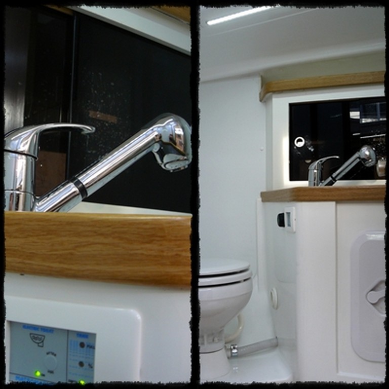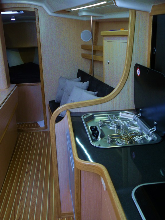 Wyposażenie dodatkowe: bramka do kladzenia masztu, sztywny sztag, roll fok, lazzy jack, instalacja wody - zbiornik, instalacja wody zaburtowej, ciepła woda, prysznic, prysznic w kokpicie, radio, CD, mp3, TV, lodówka, ogrzewanie, klimatyzacja, instalacja 230 V, oświetlenie kokpitu, ster strumieniowy, echosonda