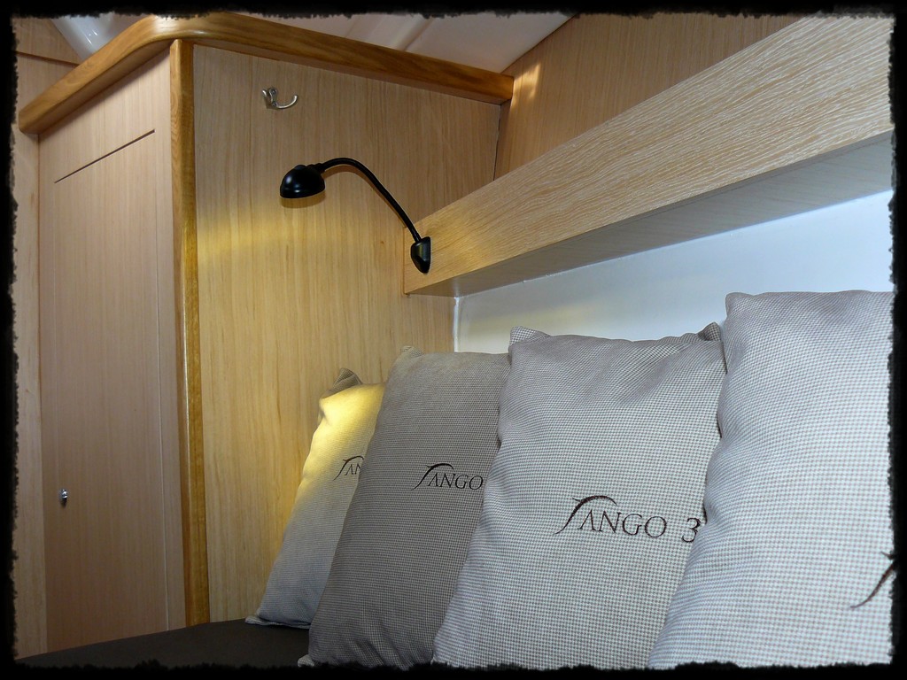 Jacht TANGO 33 - największy model z całej serii jachtów typu Tango o klasycznej i harmonijnej lini kadłuba. Bardzo przestronne wnętrze z 3 zamykanymi kabinami oraz udogodnieniami typu klimatyzacja, ogrzewanie, lodówka, ciepła woda, prysznic, toaleta morska elektryczna dają maksimum komfortu bytowania. Bezpieczeństwo zapewnia system refowania grota z kokpitu. Jacht Tango 33 to idealny kompromis doskonałych walorów nautycznych i hotelowych. Jest to pierwsze TANGO 33 w ofercie firm czarterowych na Mazurach !!! Jesteśmy pewni, że wspaniale dopełni popularną serię modelu "TANGO" na Mazurach.