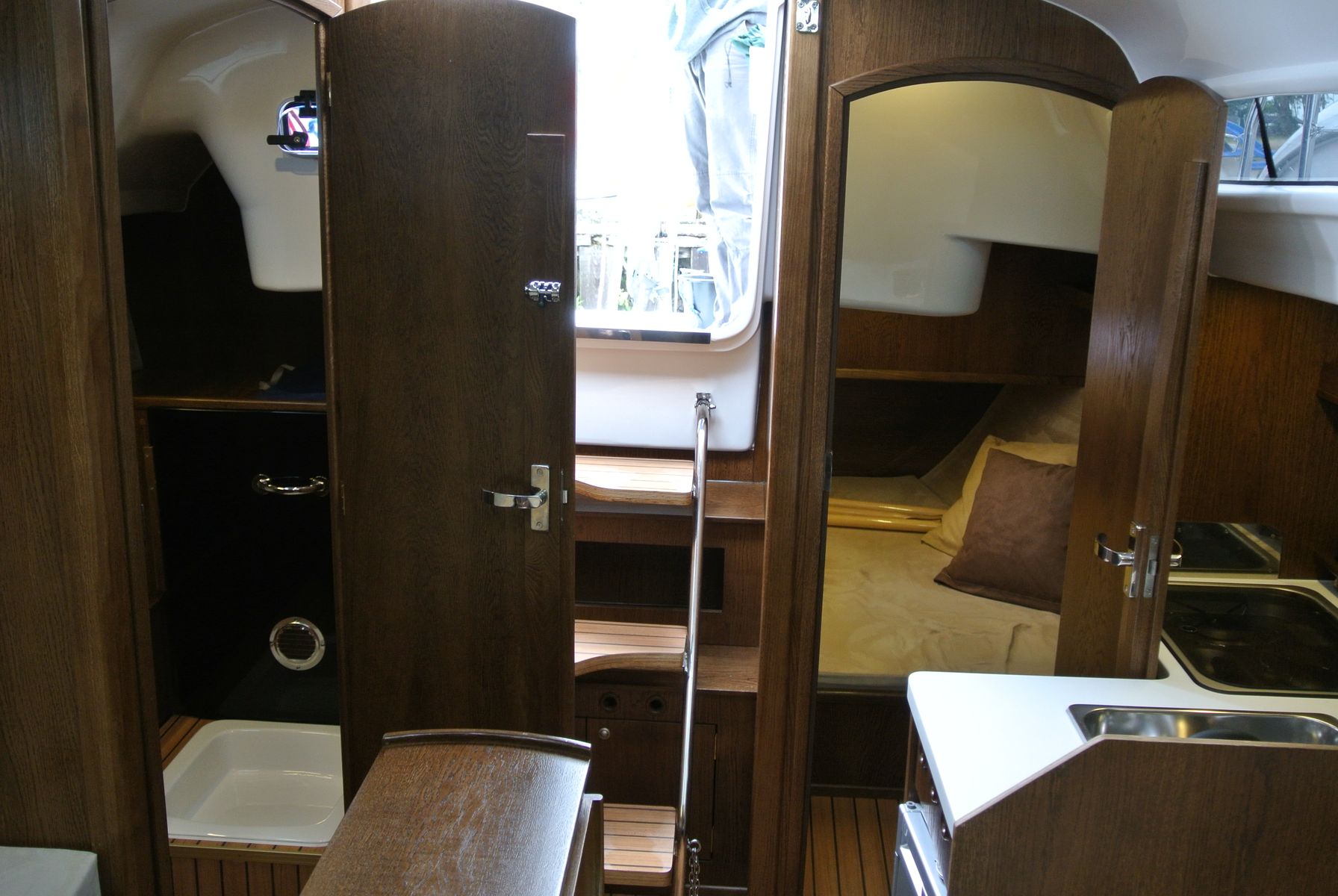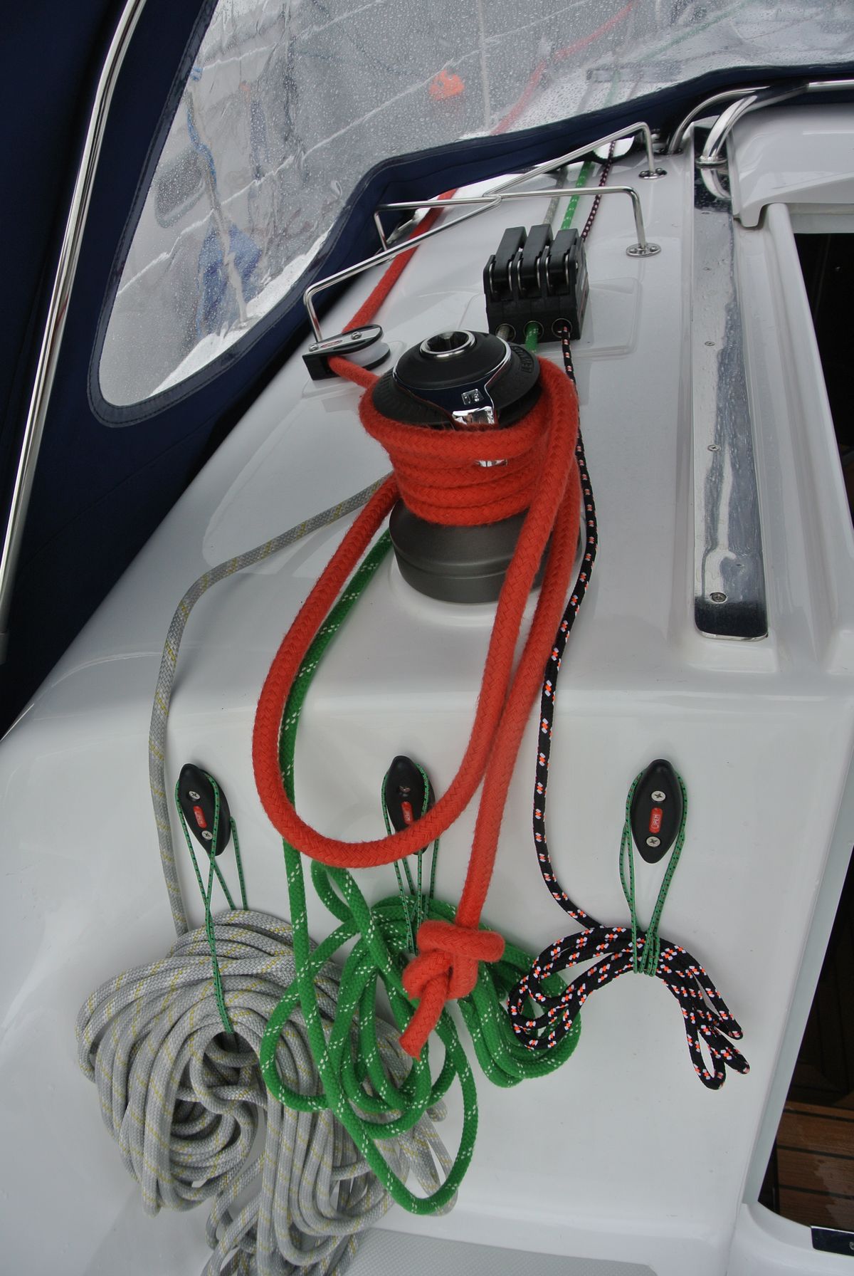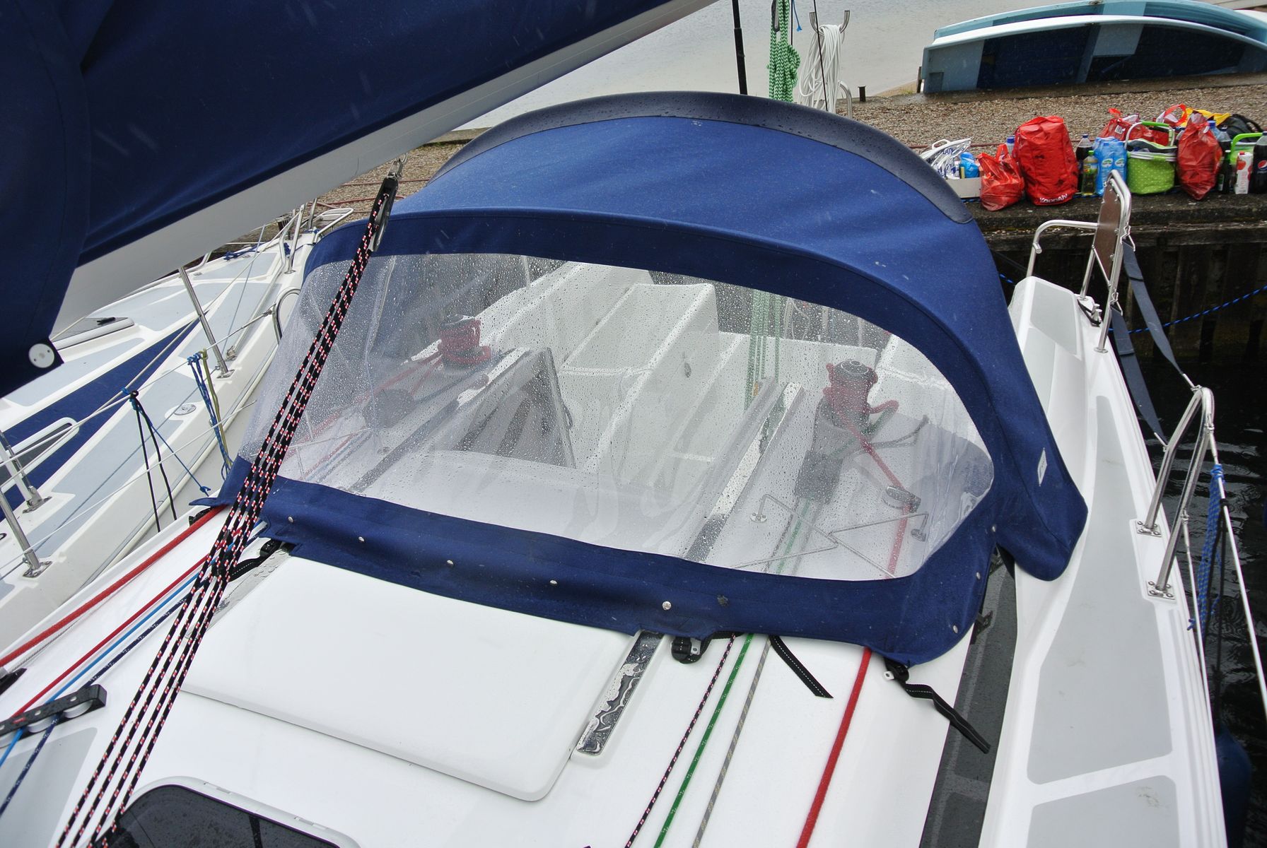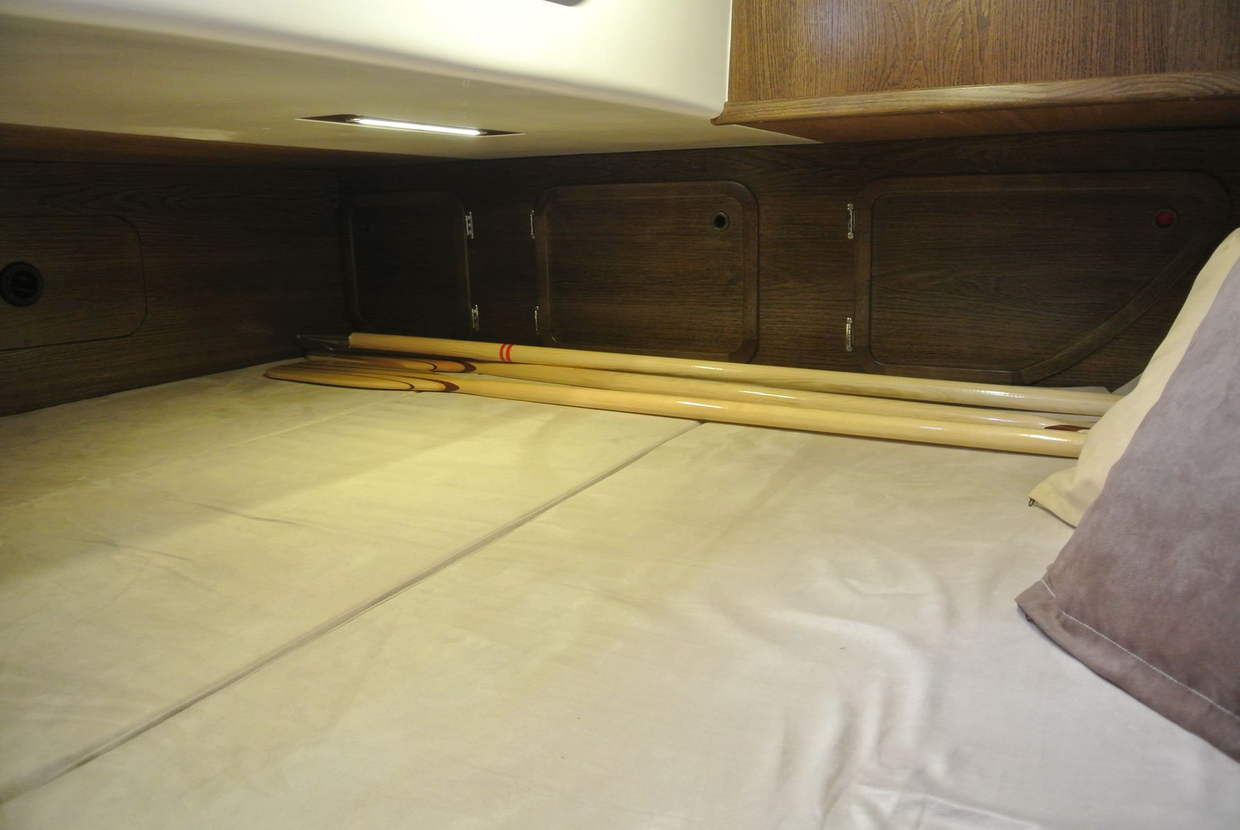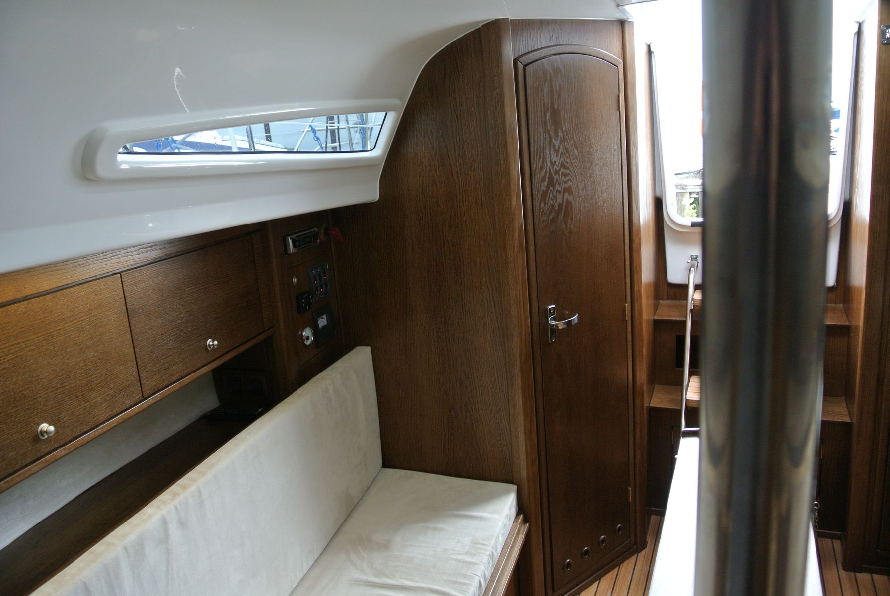 Wyposażenie dodatkowe: bramka do kladzenia masztu, sztywny sztag, roll fok, instalacja wody - zbiornik, radio, CD, TV, lodówka, ogrzewanie, instalacja 230 V, oświetlenie kokpitu