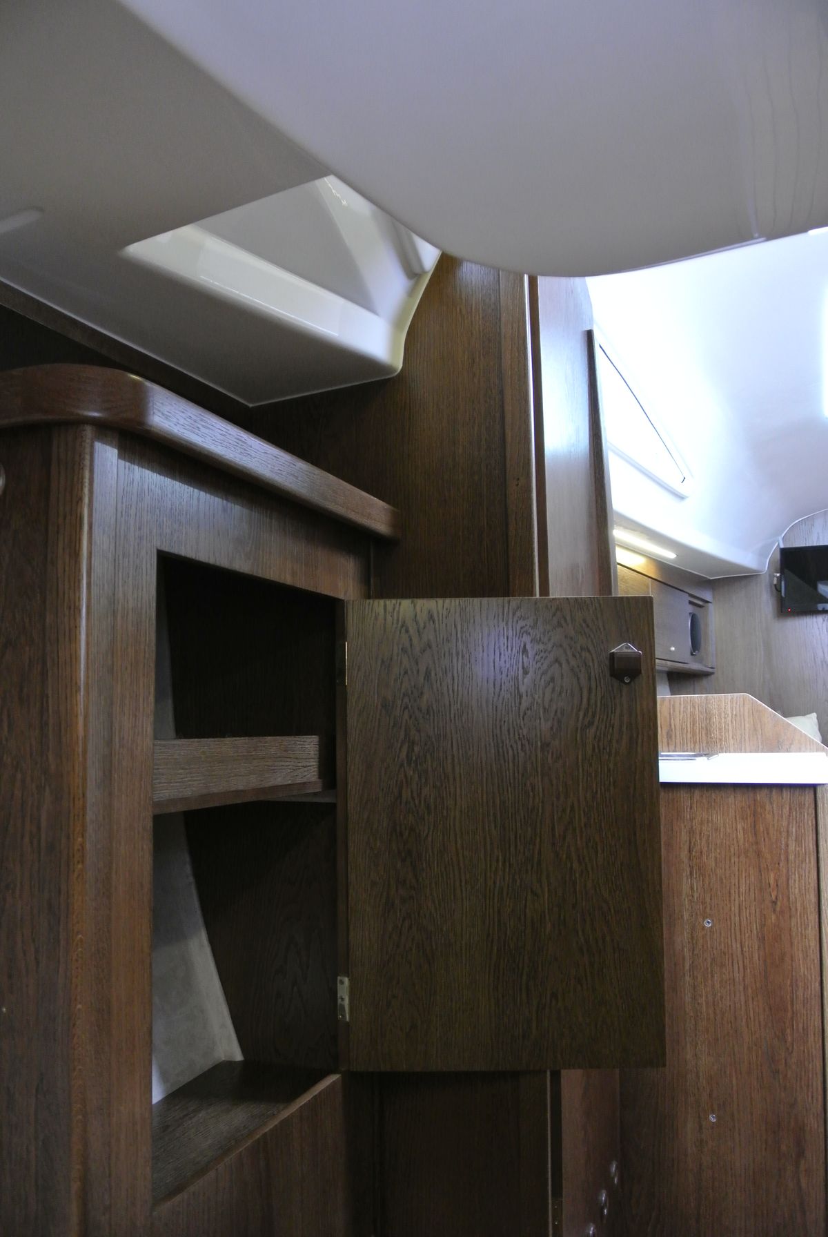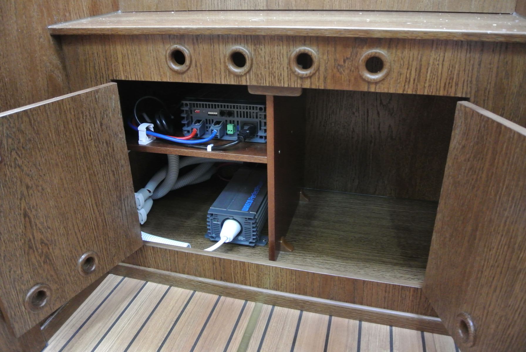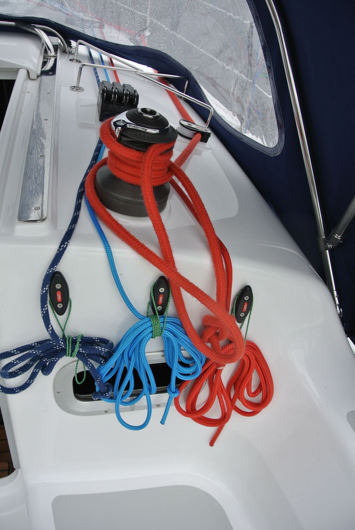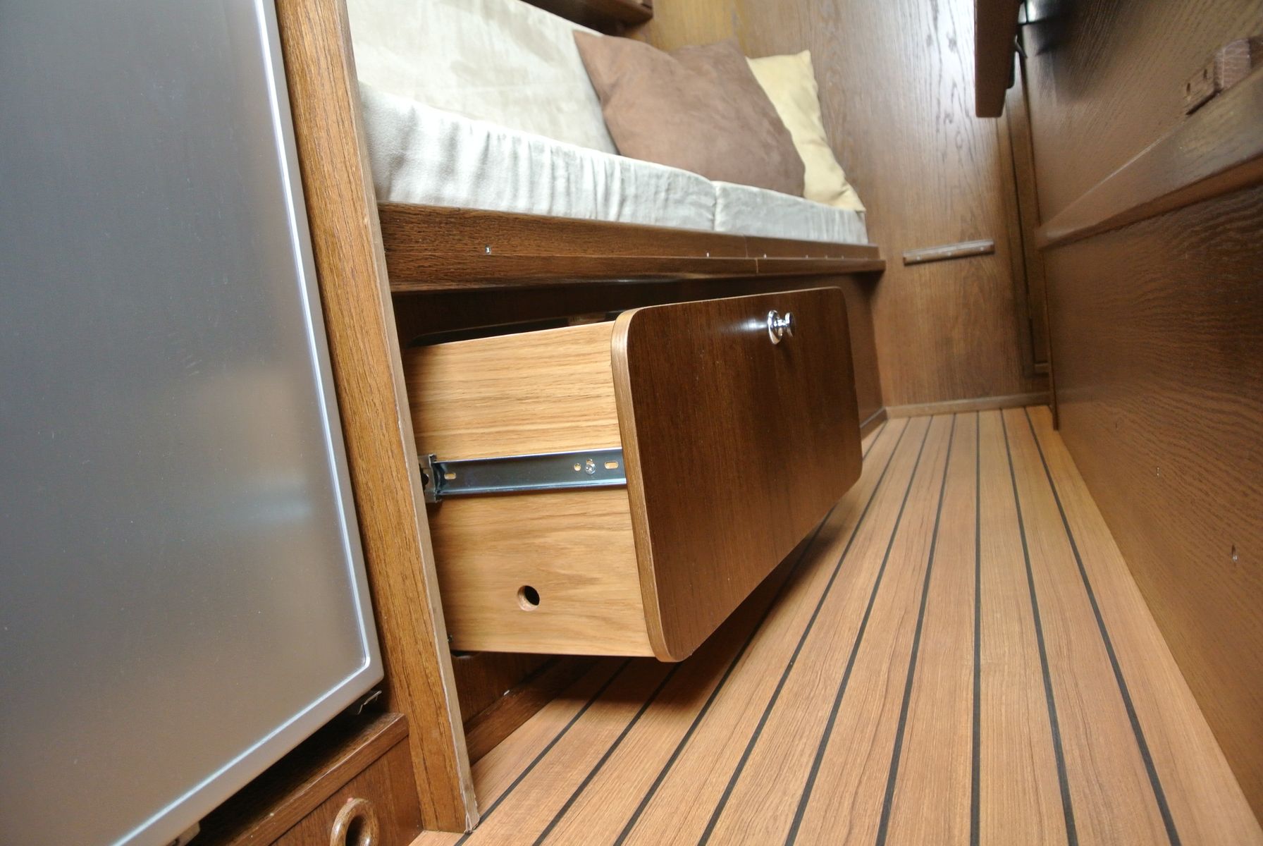 Wyposażenie dodatkowe: bramka do kladzenia masztu, sztywny sztag, roll fok, instalacja wody - zbiornik, radio, CD, TV, lodówka, ogrzewanie, instalacja 230 V, oświetlenie kokpitu