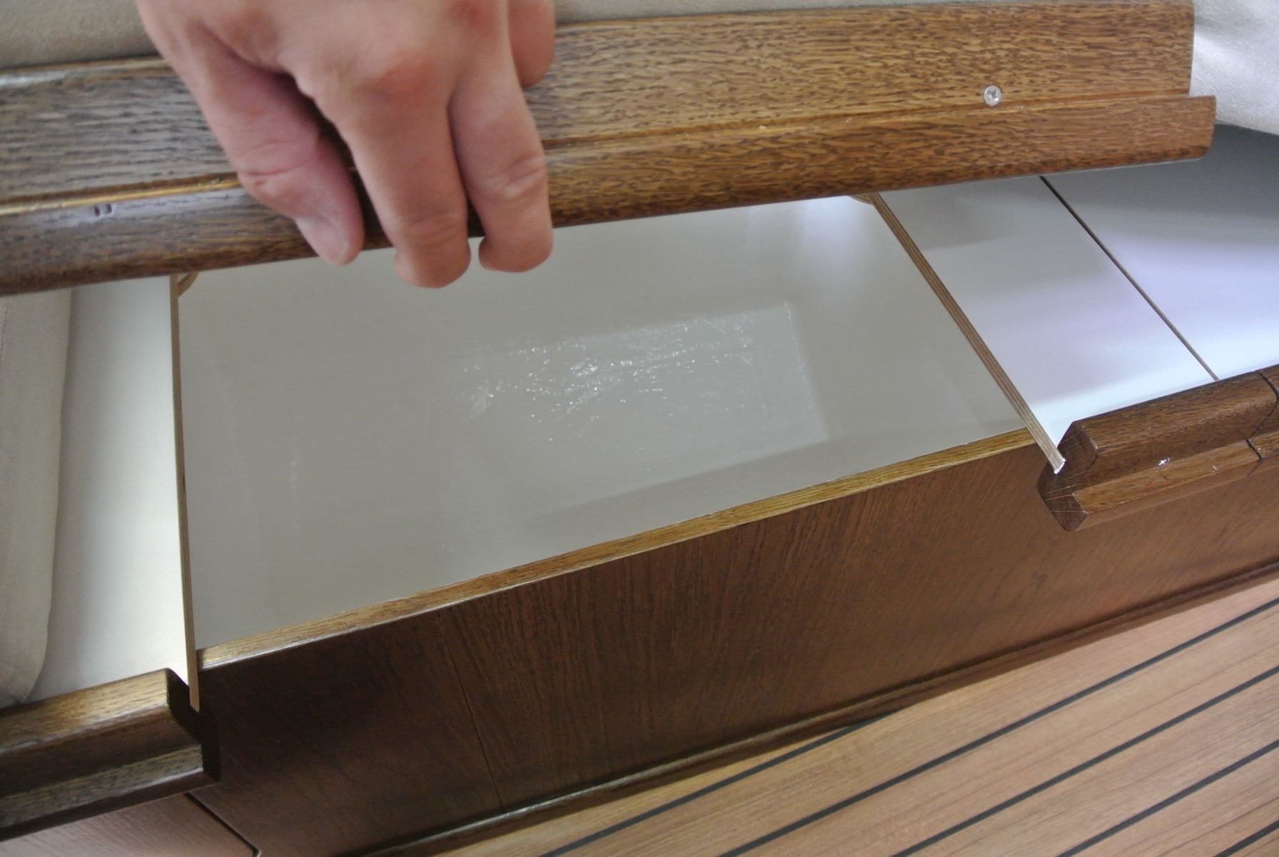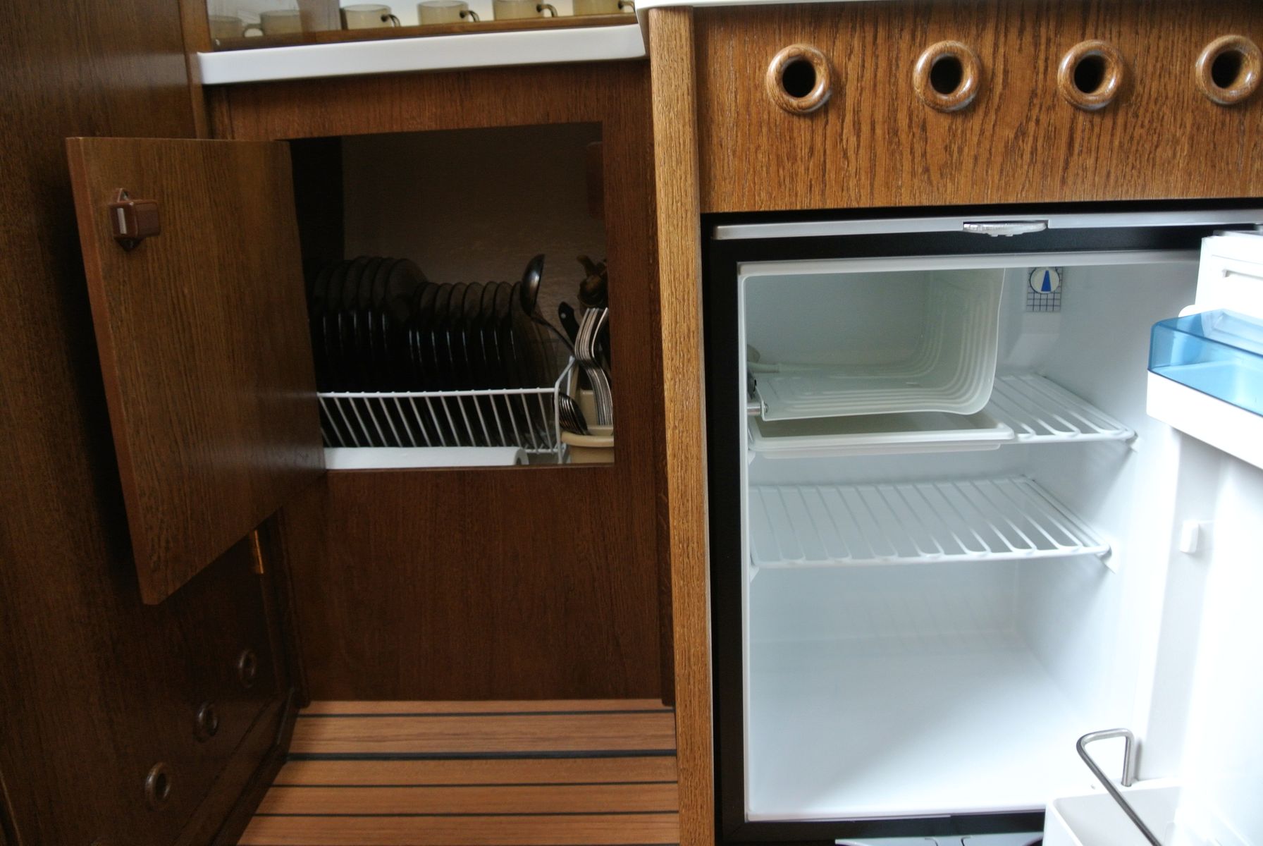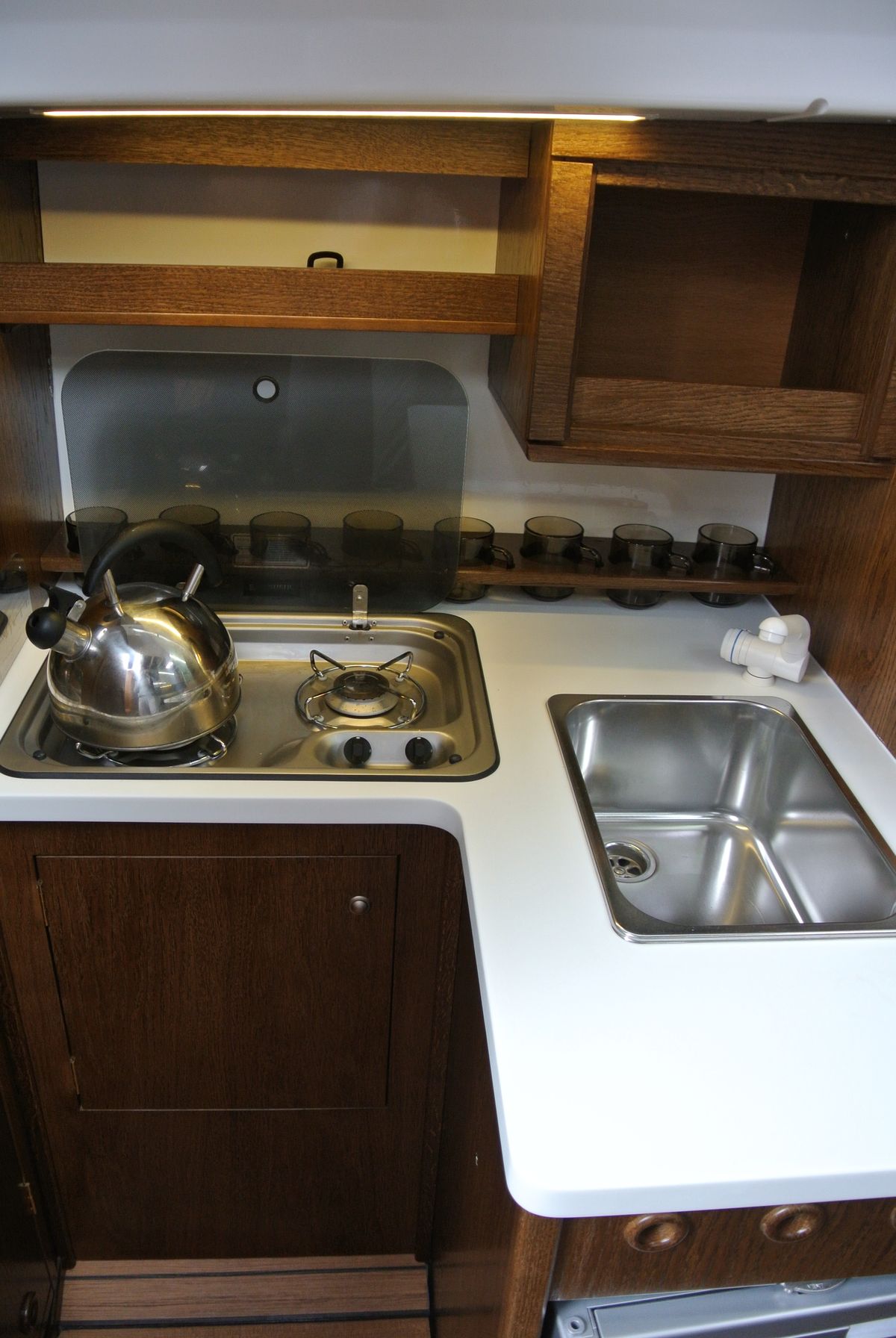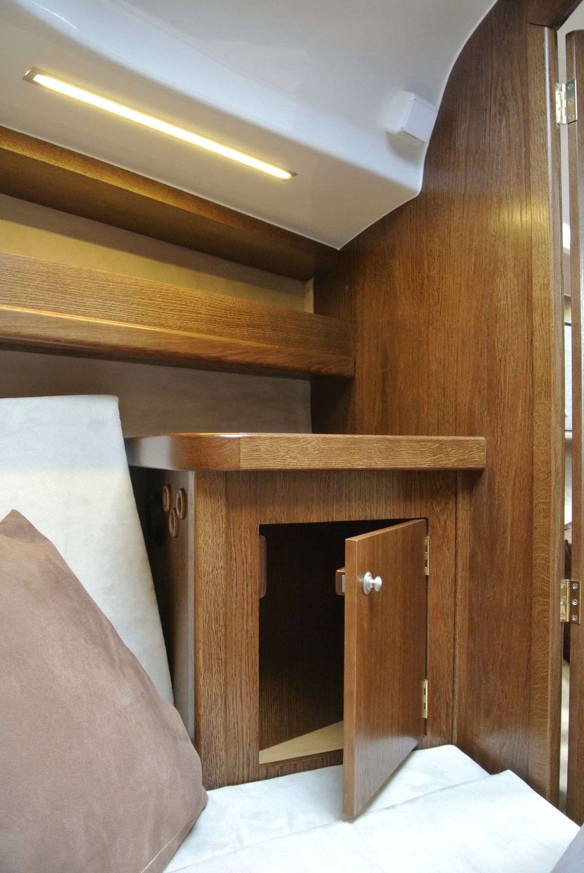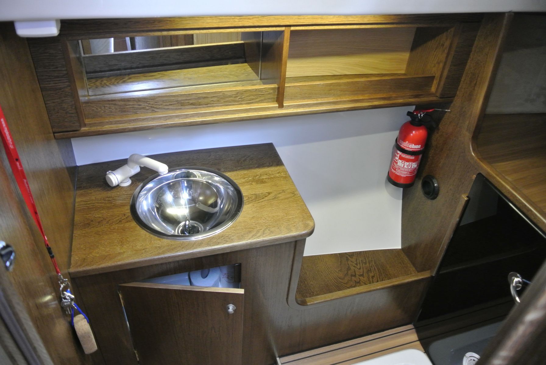 Wyposażenie dodatkowe: bramka do kladzenia masztu, sztywny sztag, roll fok, instalacja wody - zbiornik, radio, CD, TV, lodówka, ogrzewanie, instalacja 230 V, oświetlenie kokpitu