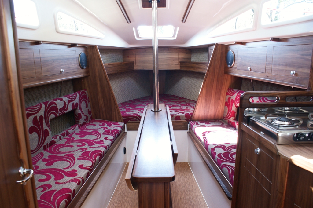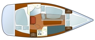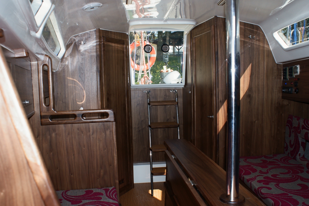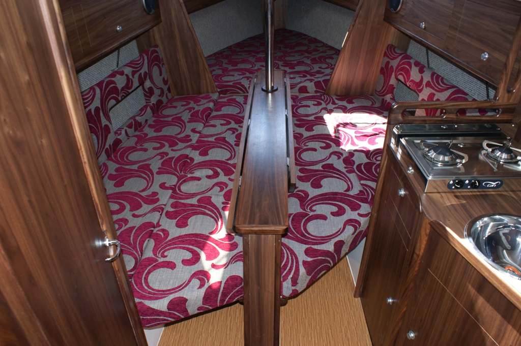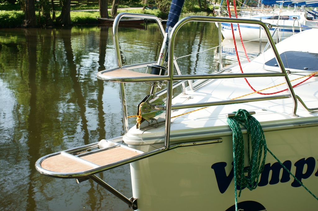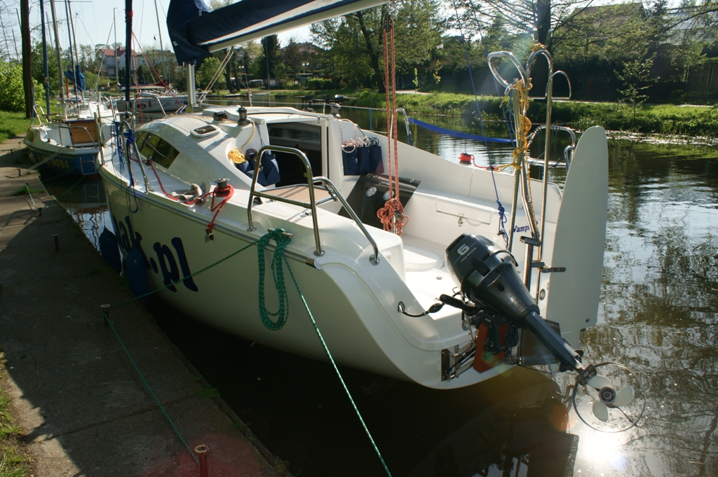 Wyposażenie dodatkowe: bramka do kladzenia masztu, sztywny sztag, roll fok, lazzy jack, instalacja wody - zbiornik, radio, lodówka, ogrzewanie, instalacja 230 V