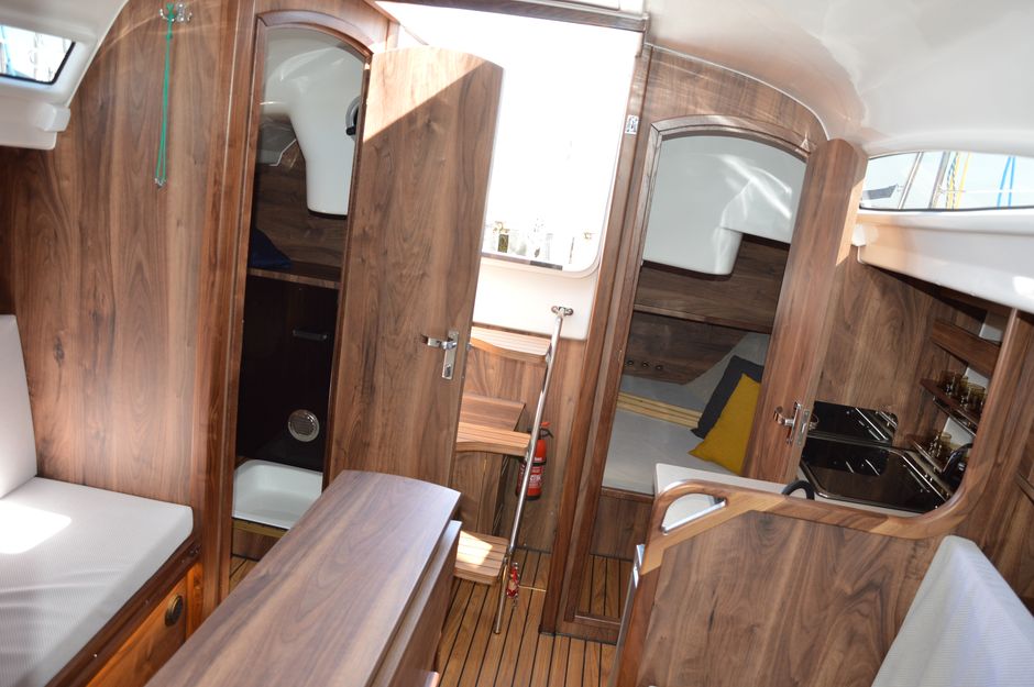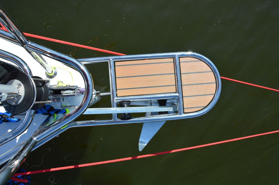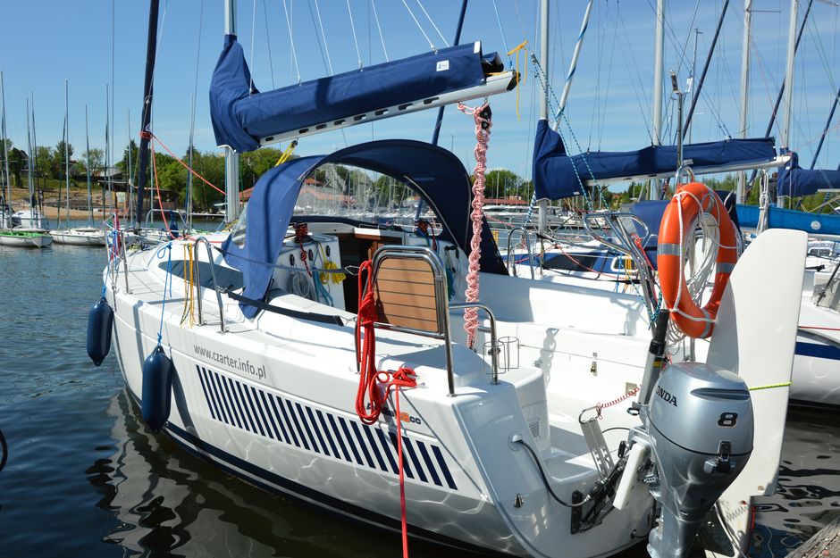 Wyposażenie dodatkowe: bramka do kladzenia masztu, sztywny sztag, lazzy jack, instalacja wody - zbiornik, prysznic w kokpicie, radio, mp3, TV, lodówka, ogrzewanie, instalacja 230 V, oświetlenie kokpitu, echosonda